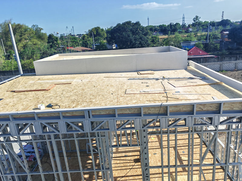 在圍護系統(tǒng)方面,外墻采用符合美標的美標OSB板(定向結(jié)構(gòu)刨花板)作為結(jié)構(gòu)覆板,配合水泥纖維板、金屬雕花板或石材飾面等外裝飾板,滿足當?shù)貙ㄖ庥^與耐久性的要求。屋面系統(tǒng)采用防水卷材與金屬瓦相結(jié)合,具備良好的抗風揭能力。針對巴拉圭及阿根廷北部亞熱帶氣候區(qū),保溫隔熱層選用高密度巖棉或玻璃棉,符合美標ASTM相關(guān)標準;針對阿根廷南部巴塔哥尼亞地區(qū)寒冷氣候,則需增加保溫層厚度,部分項目可采用雙層保溫設(shè)計。水電管線預(yù)埋在墻體與樓板之中,實現(xiàn)工廠預(yù)制與現(xiàn)場快速對接。